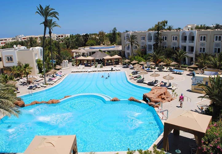 Situé sur la côte est de l'île de Djerba, ce complexe de style décontracté donne sur une route bordée de palmiers. Il se trouve à 7 km du musée Lalla Hadria, présentant des expositions d'histoire régionale, et à 3 km du Grand Casino de Djerba, proposant des jeux de roulette et des machines à sous.Les chambres et suites sobres sont dotées d'une salle de bain attenante, de la télévision par satellite, d'une terrasse et d'un mini-frigo. Des coffres-forts sont à disposition en supplément.